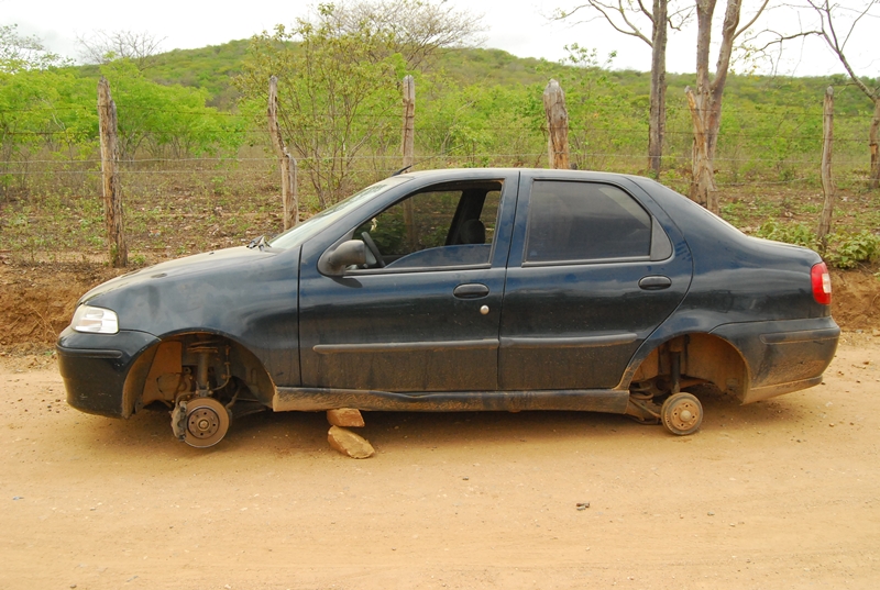 Populares transitavam pela estrada que dá acesso ao Sítio Maracajá, próximo ao bairro da Palestina e visualizaram um carro abandonado sem os pneus, e suspeitaram que o mesmo, poderia ser produto de roubo, em seguida comunicaram a polícia que foi averiguar a informação.